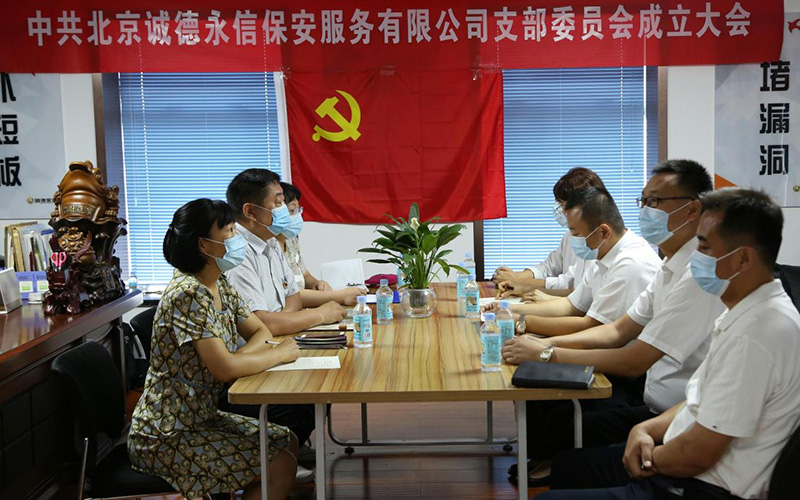 大会在激昂的国歌声中拉开序幕。国润党群服务中心党委书记陈进梅同志宣读《关于成立北京九游网页版在线_九游(中国)保安服务有限公司支部委员会的批复》。在热烈而持久的掌声中,在各级领导和与会党员的共同见证下,北京九游网页版在线_九游(中国)保安服务有限公司党支部正式宣告成立。