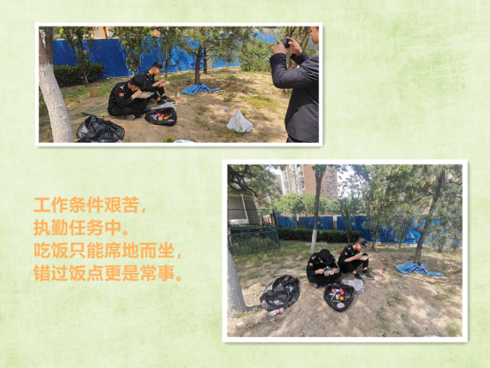 疫情下的北京,放慢了平日里快节奏的脚步。而在一线的抗疫战场上,从清晨到日暮,从黎明到黄昏,每日都有保安员搬运防疫物资、维持防疫秩序、消杀防疫场所匆忙的身影。他们用脚步丈量责任,用行动抗击疫情,虽然身影疲惫,但目光坚定,心声一致。